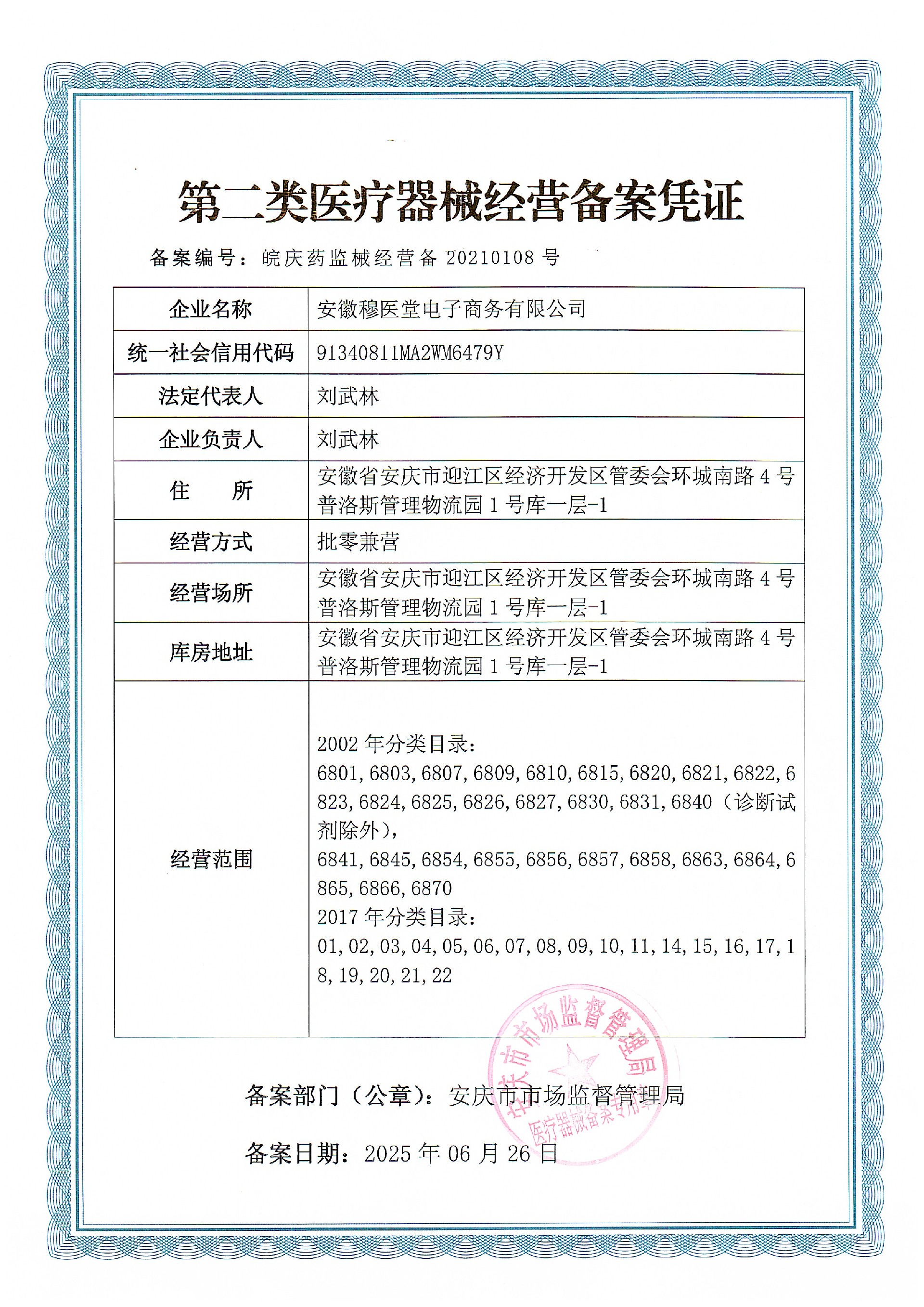 公司以授權(quán)品牌“穆一堂”,已經(jīng)在淘寶、京東、拼多多、百度健康商城、快手、美團(tuán)等多個主流電商平臺開通店鋪,公司運(yùn)營資質(zhì)產(chǎn)全,獲得了:醫(yī)療器械經(jīng)營備案憑證、醫(yī)療器械網(wǎng)絡(luò)經(jīng)營備案、食品經(jīng)營許可證、互聯(lián)網(wǎng)醫(yī)療器械信息服務(wù)資格證、商標(biāo)授權(quán)等資質(zhì)。經(jīng)營品類涵蓋了前列腺系列醫(yī)療器械,如凝膠、栓劑、膏貼等,還新推出了男科、婦科健康產(chǎn)品,以多品類產(chǎn)業(yè)格局,構(gòu)建此類用戶一站式健康服務(wù)業(yè)體系。